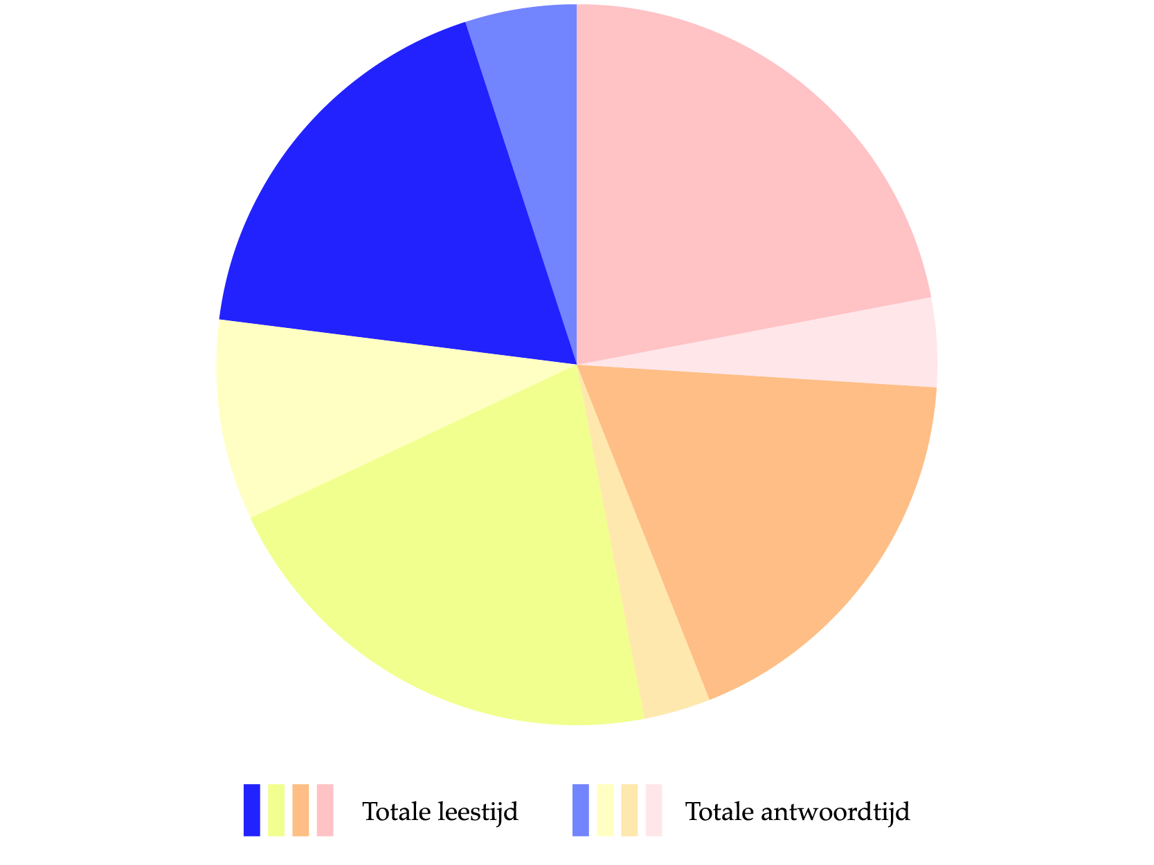 De totale tijd per persoon verdeeld in twee onderdelen.