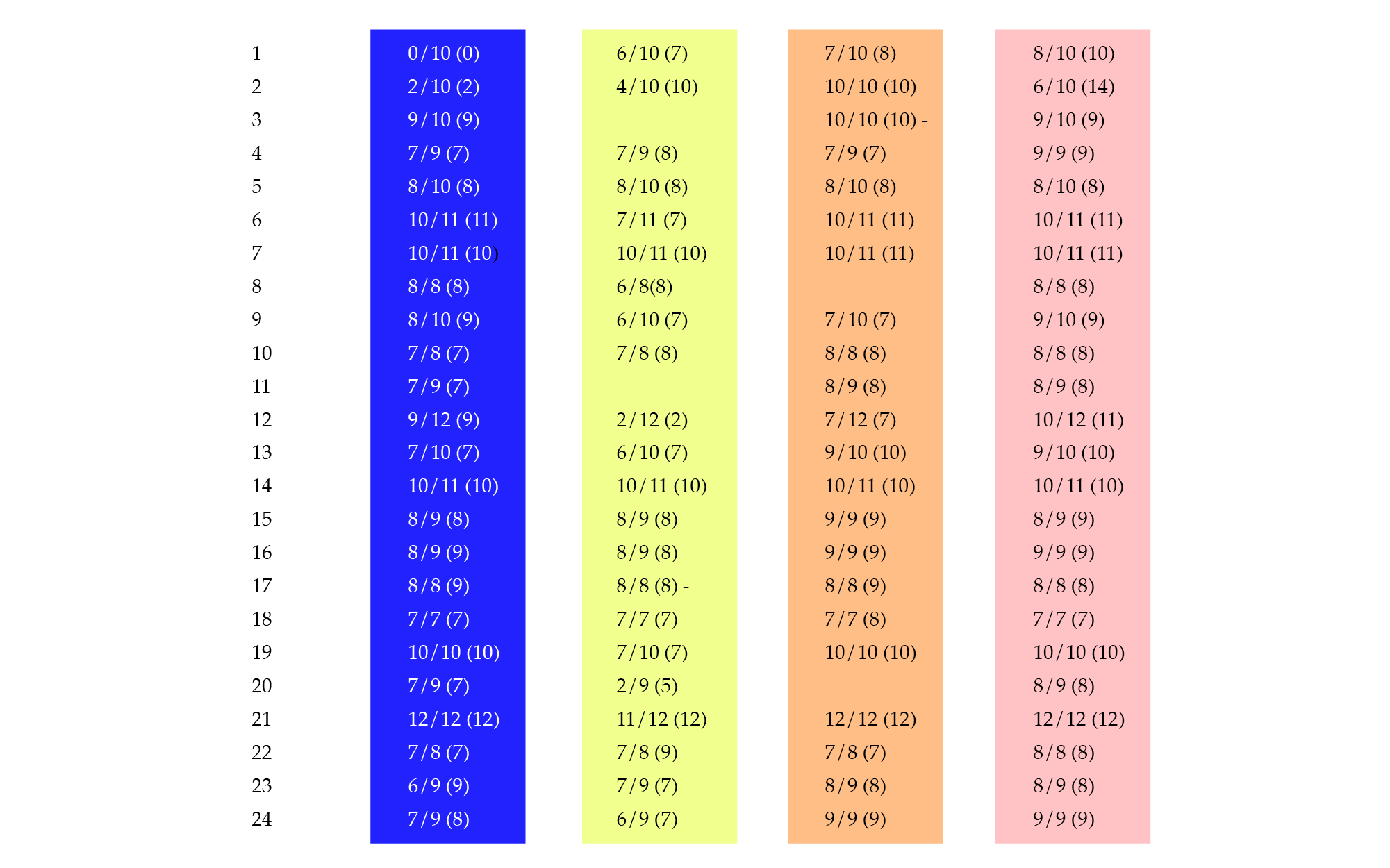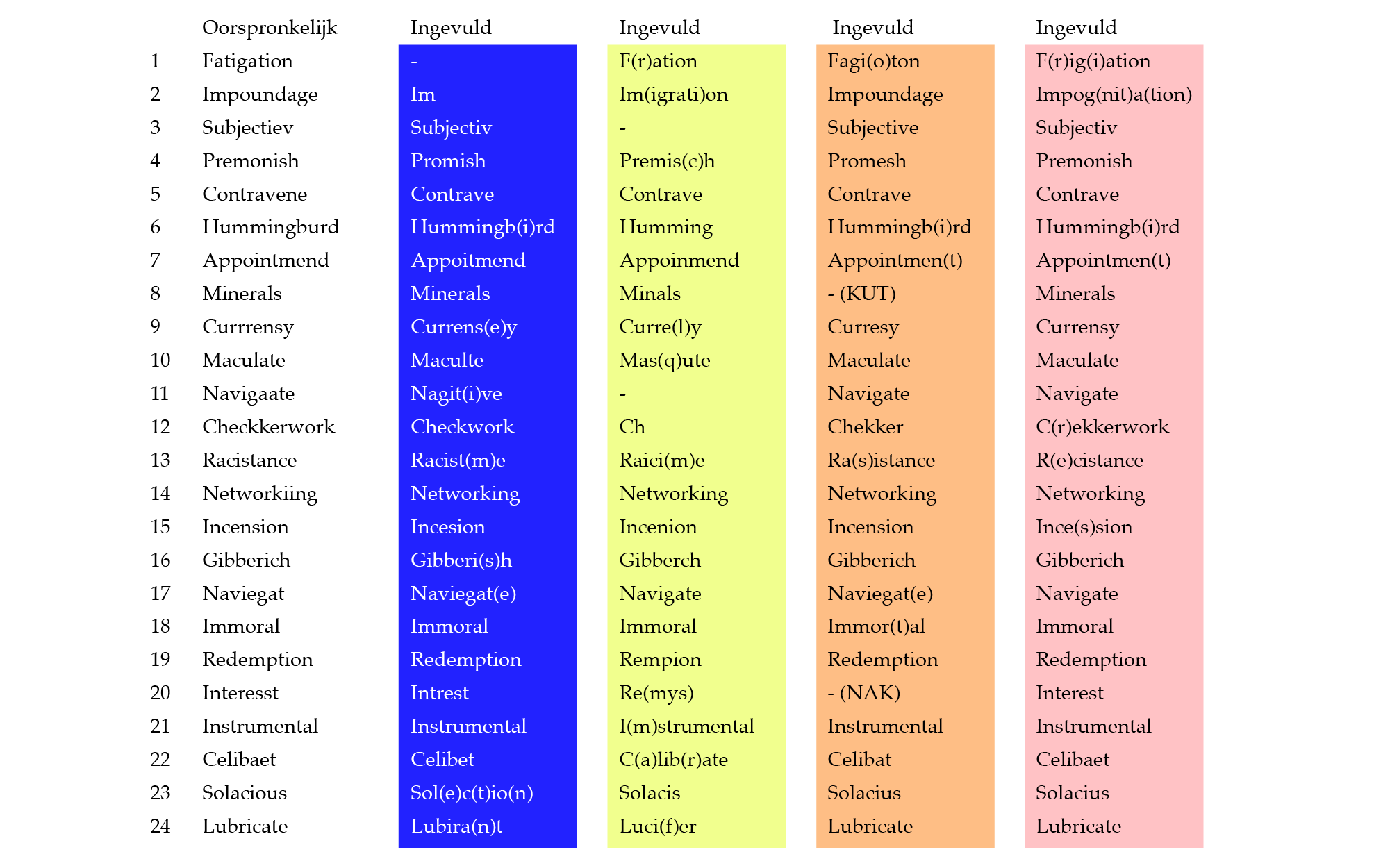 Om de leesbaarheid van kleurcombinaties text/achtergrond te testen zijn de testpersonen getest op hun geheugen. Elk woord werd heel snel geflitst waarna de testpersonen het woord exact moesten natypen. Op basis hiervan kon de tijd tussen het woord en het antwoord gemeten worden en het aantal kloppende letters geteld worden. Samen vormen deze de kleurcombinatie waarbij tekst het beste en snelste wordt opgenomen.